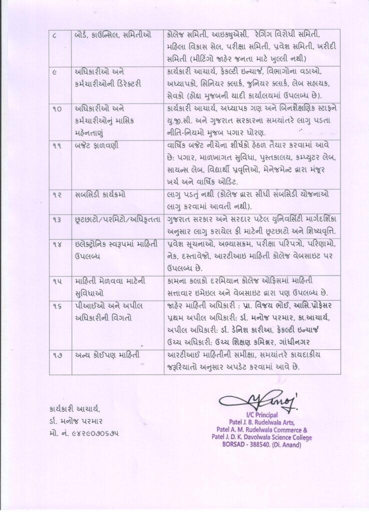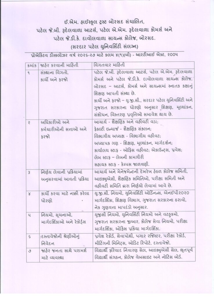 માહિતી અધિકાર અધિનિયમ ૨૦૦૫ કલમ ૪ (૧) (ખ) મુજબ પ્રોએક્ટીવ ડિસ્ક્લોઝર